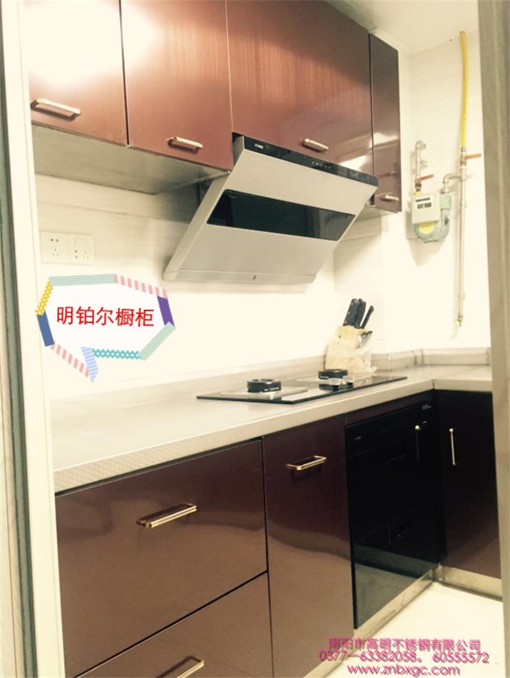 明鉑爾?不銹鋼櫥柜有很多的優點,屬于國家食品級材質,經久耐用,可以使用100年,不變形,不褪色,不怕水,不【怕火,