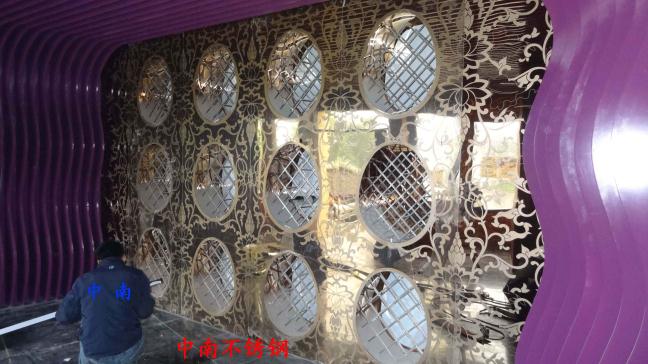 2012年,明鉑爾與荷花廣場流金歲月西餐廳,與北京星亞澤園裝飾工程公司合作。制作玫瑰加荷花蝕刻酒柜,不銹鋼藝術造型。