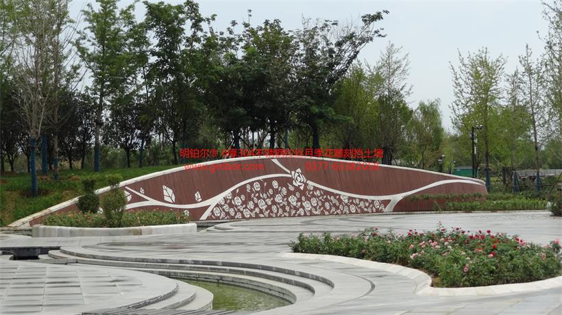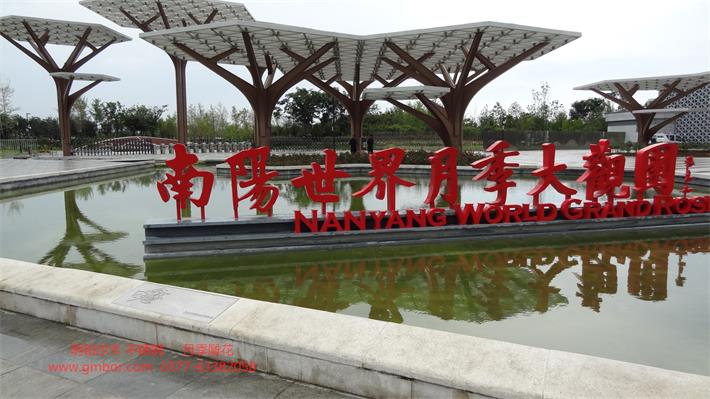 2019世界洲大會-南陽月季園北大門入口欄桿 地雕 月季花304不銹鋼裝飾工程