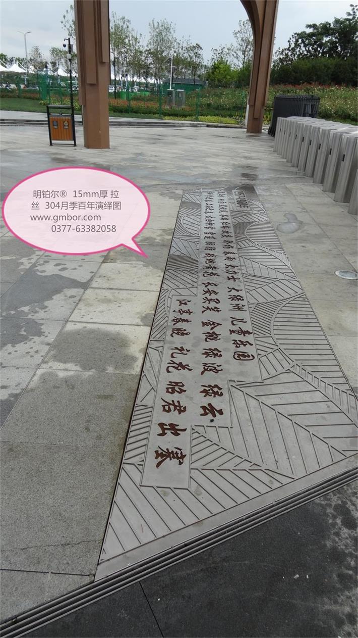明鉑爾?不銹鋼月季園主入口大門304不銹鋼10毫米厚欄桿,6毫米厚水池10塊月季花圖,利用不銹鋼的拉絲紋路反光色差經(jīng)驗,解決了北京設計院林博士要求很難做到的不銹鋼激光雕刻2毫米深度的月季花圖效果,經(jīng)過我數(shù)10次的大樣,努力,研究終于做出了最佳理想的效果,出乎意料之外的精美,背后多少時間的付出,不惜一切代價的努力方能成就精品。1957年至今13塊月季名稱地雕,近200平方擋墻6毫米月季花雕刻圖,這些所有的產(chǎn)品沒處細節(jié),每一條線都經(jīng)過CAD在電腦修改檢查再修改再檢查,打樣再修改再細化的一個漫長的圖紙修改過程最終敲定的方案效果,擋土墻鉚釘內(nèi)陷,我們加焊接整體再拉絲處理,每一處方案都是創(chuàng)最優(yōu)品質(zhì)去展現(xiàn)給南陽不銹鋼月季藝術的高水準,為迎接全國人民的到來參觀,憑著高要求做我們最優(yōu)的產(chǎn)品奉獻給南陽這片土地…
