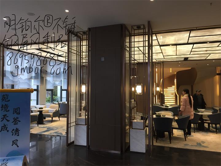 不銹鋼藝術屏風,5mm*20mm尺寸拼接現代式與中國風結合的藝術紅古銅屏風背景墻吧臺
