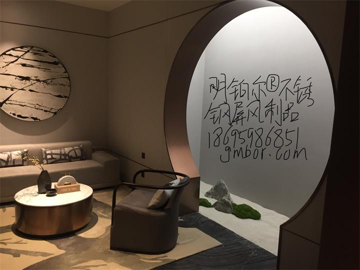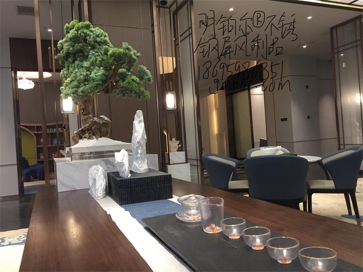 不銹鋼藝術屏風隔斷造型,明鉑爾不銹鋼藝術工程,南陽青楓苑售樓中心,深圳香港設計大師,國際藝術標準設計,