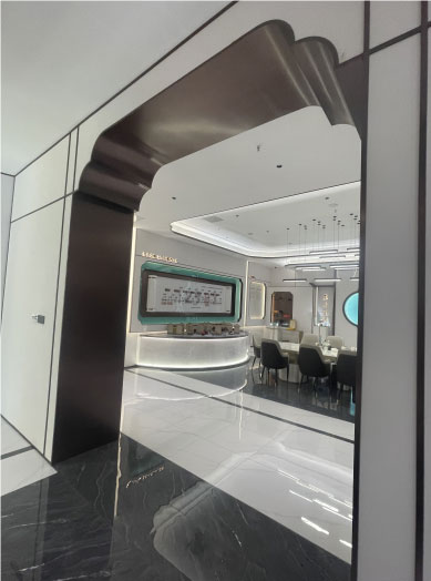 通往會客廳的曲線線條包邊不銹鋼門洞。