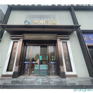 大門整體使用不銹鋼材質,八個不銹鋼字耐磨耐曬耐腐蝕,地拉彈簧門上放棄使用傳統拉手,改用定制云紋拉手,使得大門的質感更上一層樓。