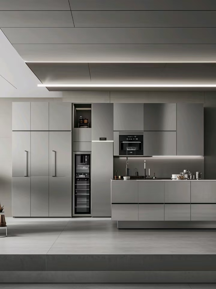 - 結合了不銹鋼櫥柜的耐用性和多種功能模塊,如烤箱、洗碗機、微波爐等嵌入式電器。
